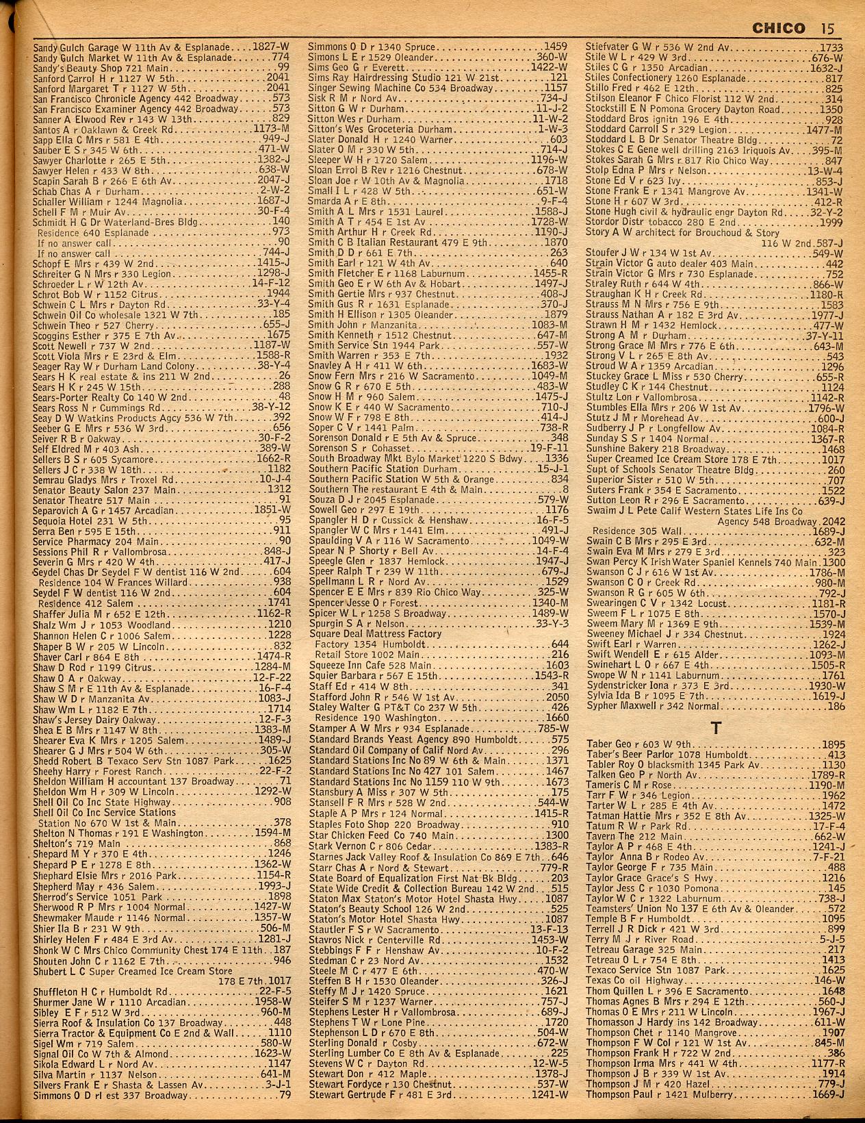 | 65 | | 66 | | 67 | | 68 | | 69 | | 70 | | 71 |S.R.A. CAMP FORST RANCH, S.S. RANCH, SACRAMENTO HOG RANCH, SALMON FALLS, SANKEY STATION, SCANDIA, SCHWAB, SHELDON, SHERIDAN, SHINGLE SPRINGS, SIERRA BUTTES INN, SIERRA CAMPS, SIERRA CITY, SIERRA OAKS, SILVER FORK, SITES, SLOUGH HOUSE, SMARTSVILLE, SMITH FLAT, SODA SPRINGS, SPENCEVILLE, SPERBECK, SQUAW CREEK, STANDARD TROWBRIDGE, STANFIELD HILL, STEWART, STIRLING, STOCKTON CAMP FIRE GIRLS, STOCKTON MUNICIPAL CAMP, STORRIE, STRAWBERRY, STRAWBERRY VALLEY, SUISUN-FAIRFIELD, SUMMIT HIGHWAY STATION, SUNNYBROOK, SUTTER BASIN, SUTTER CITY, SUTTER CREEK