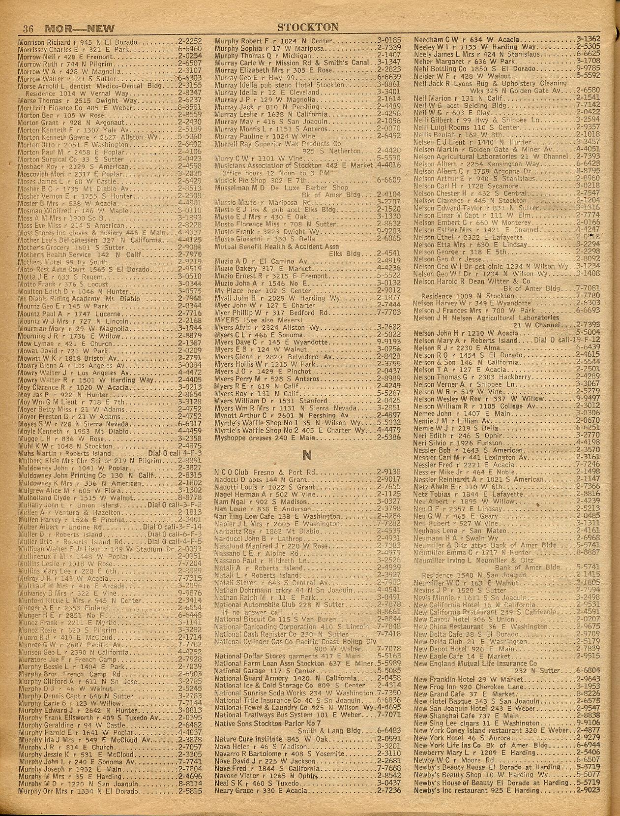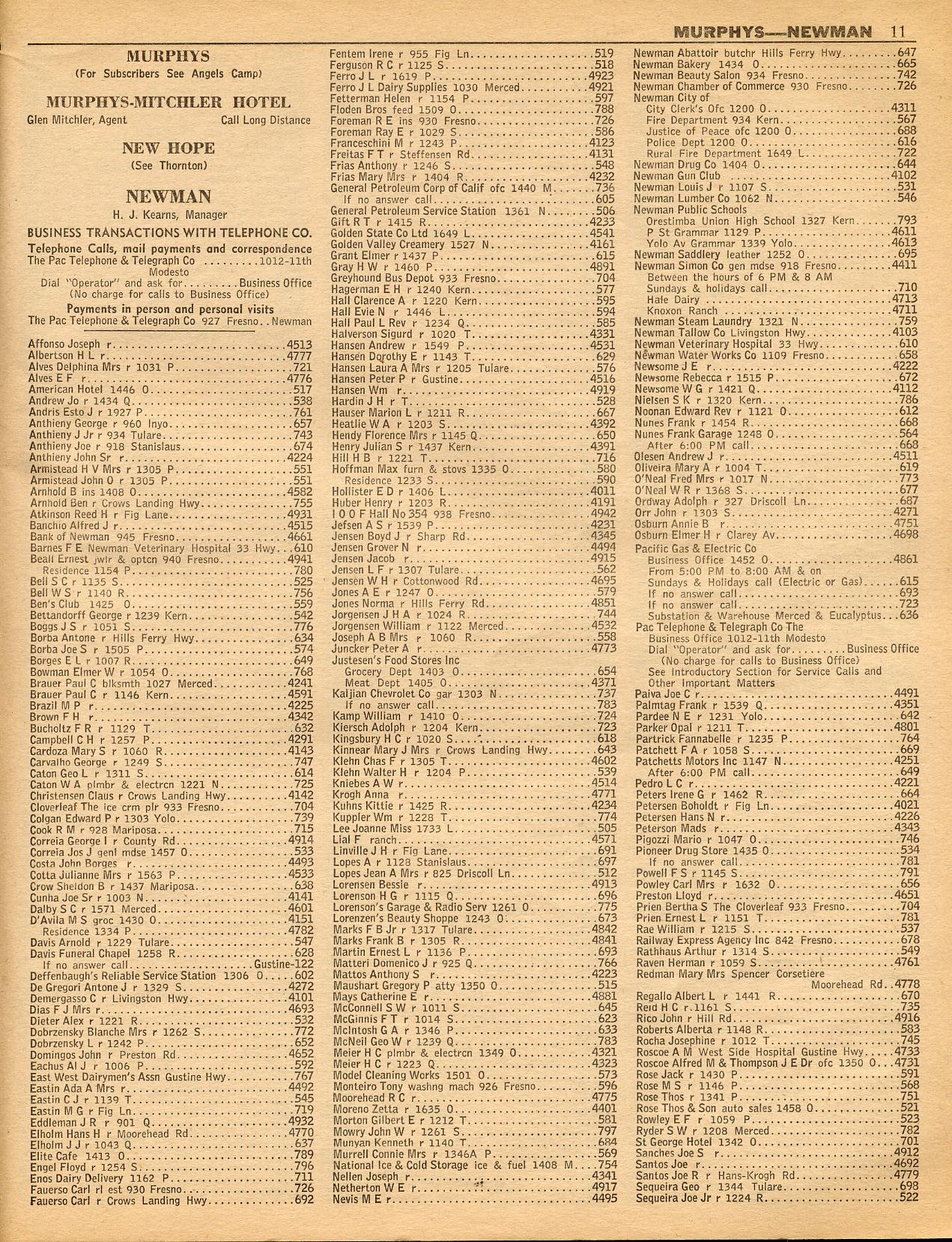 MANTECA, MATHER, MATHER RANGER STATION, MELONES, MIDDLE RIVER, MILLERS FERRY, MILTON, MOCCASIN, MOORES, MOUNTAIN GATE, MOUNTAIN RANCH, MURPHYS, MURPHY'S-MITCHLER HOTEL, NEW HOPE, NEWMAN, NORTON
