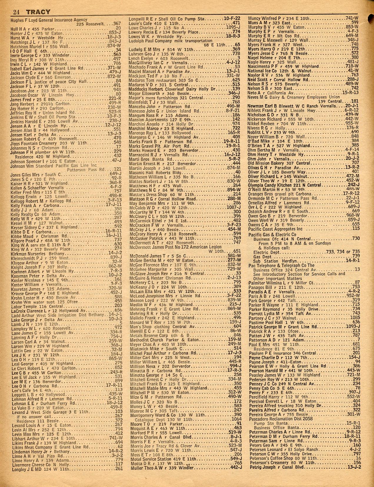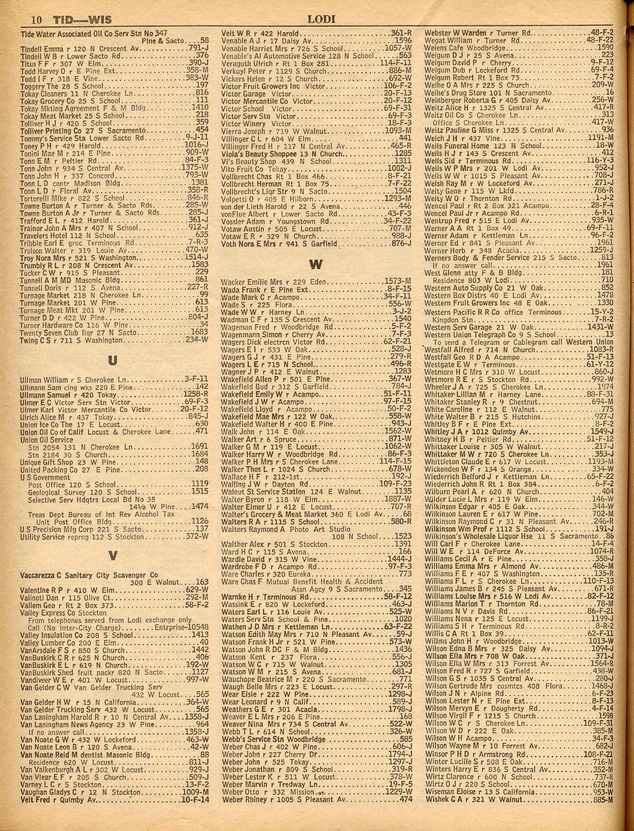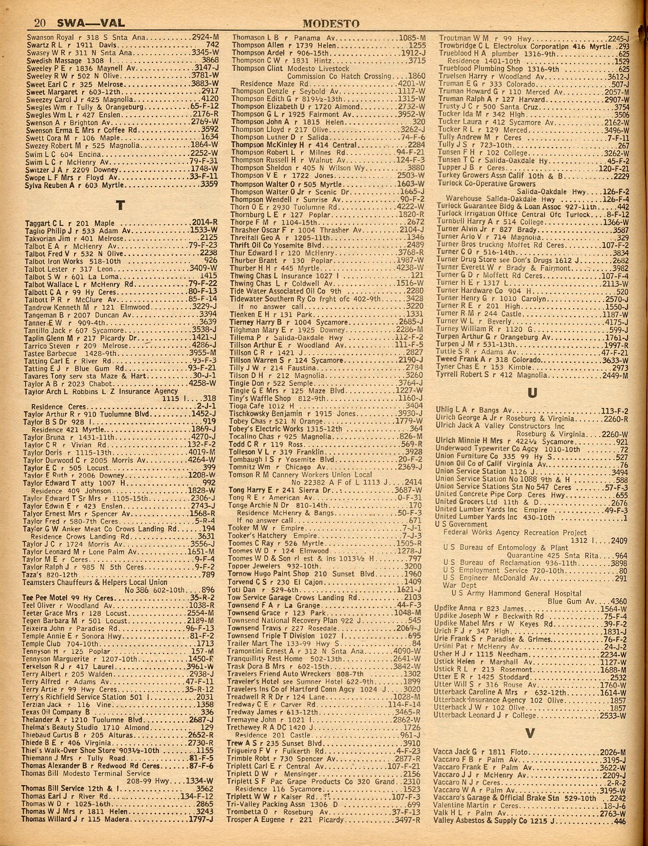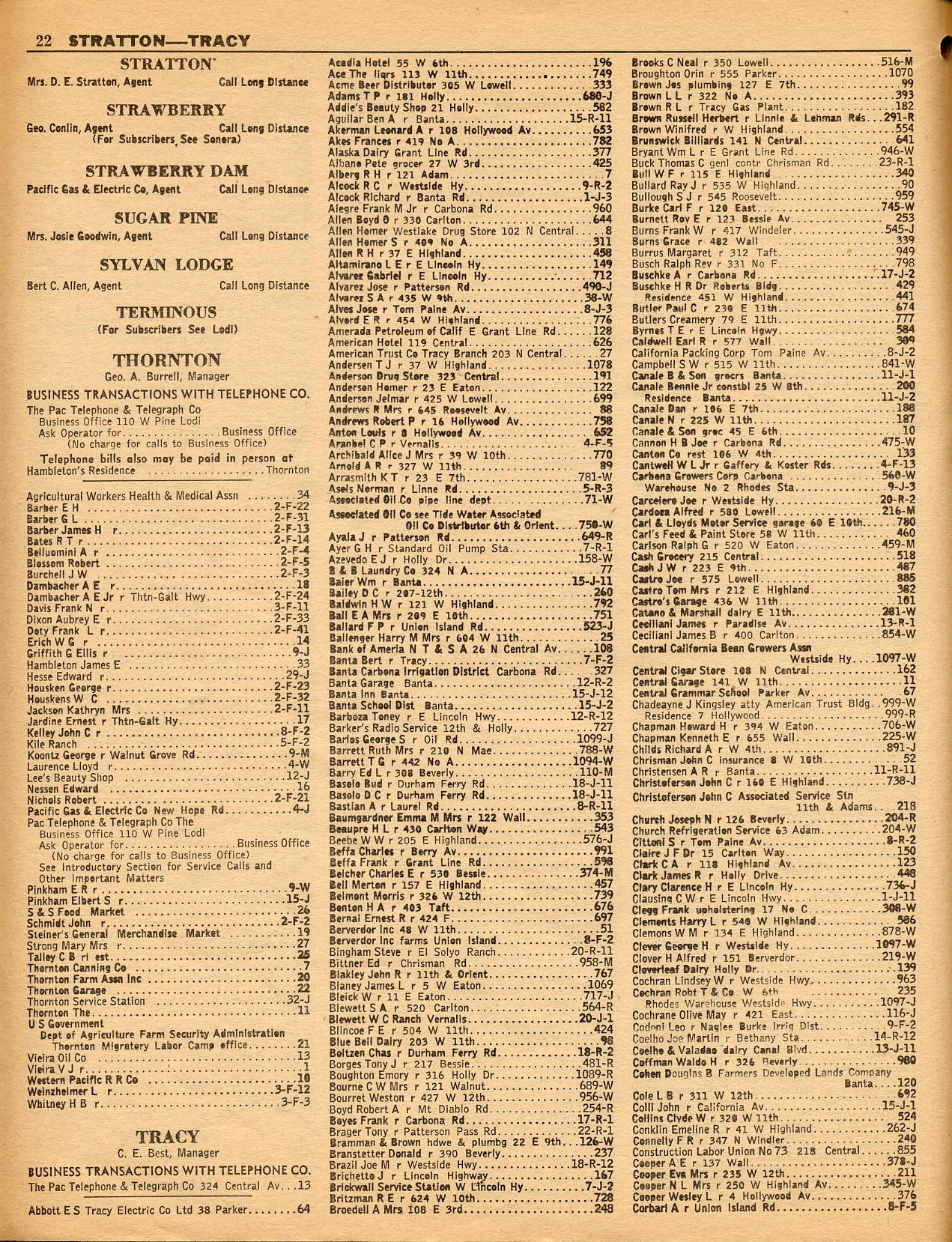 TERMINOUS, THORNTON, TRACY, TUTTLETOWN, TWAIN HARTE LODGE