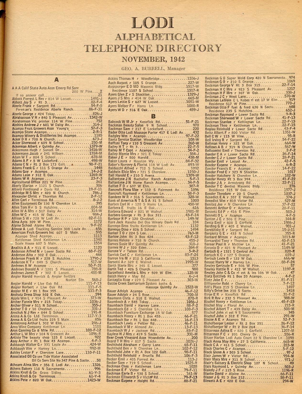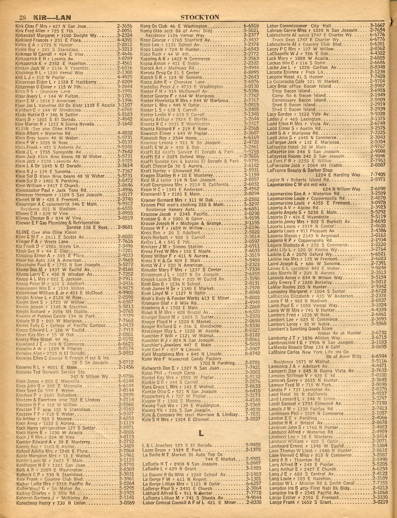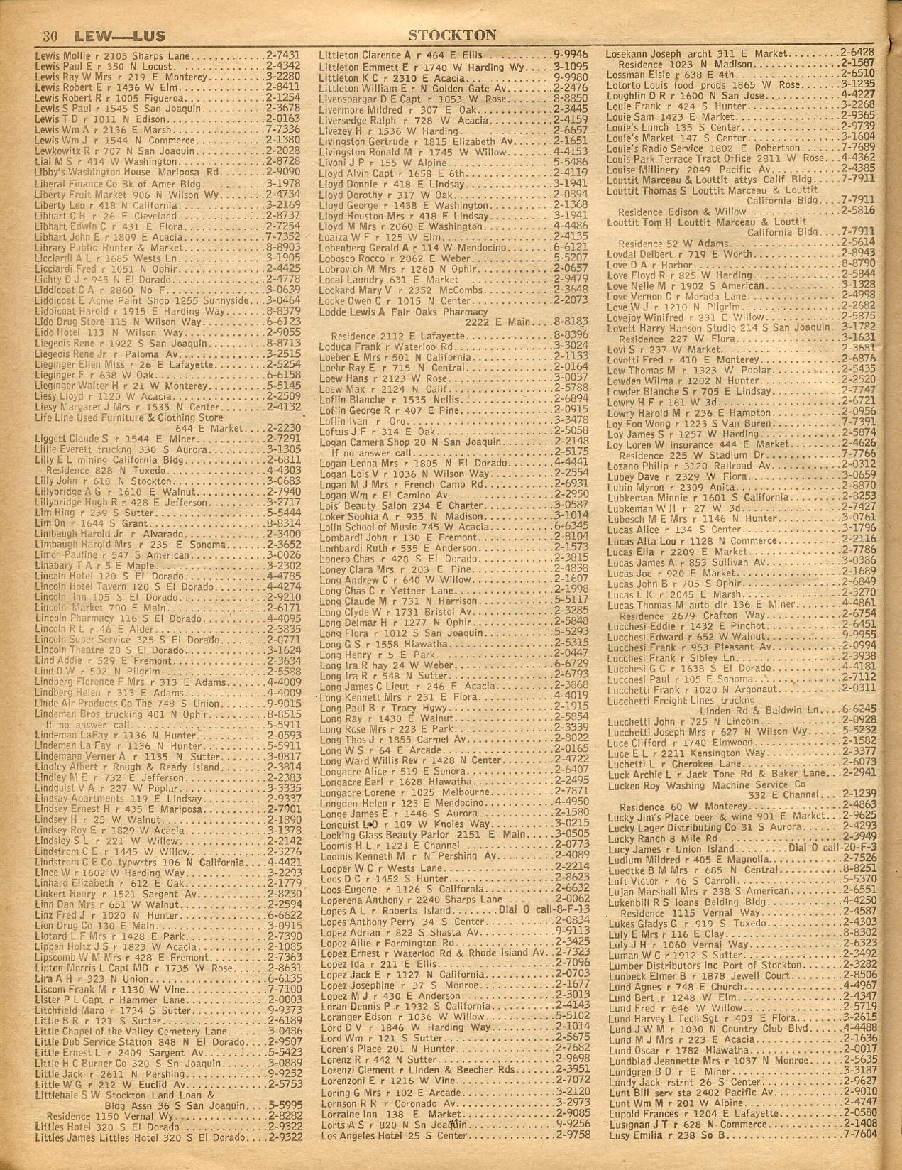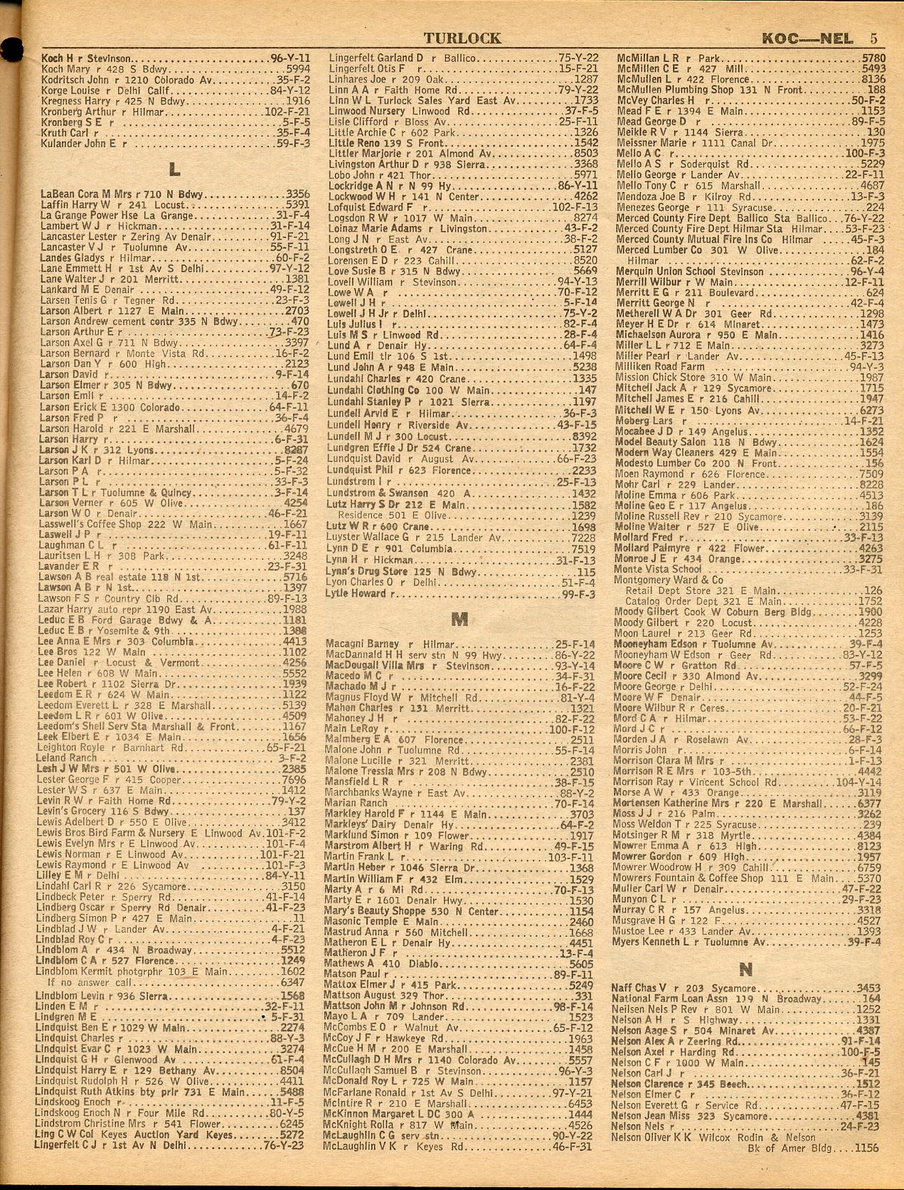 LAFAYETTE, LAGRANGE-TOLL STATIONS, LAKE ALPINE LODGE, LATHROP, LINDEN, LOCKEFORD, LONG BARN