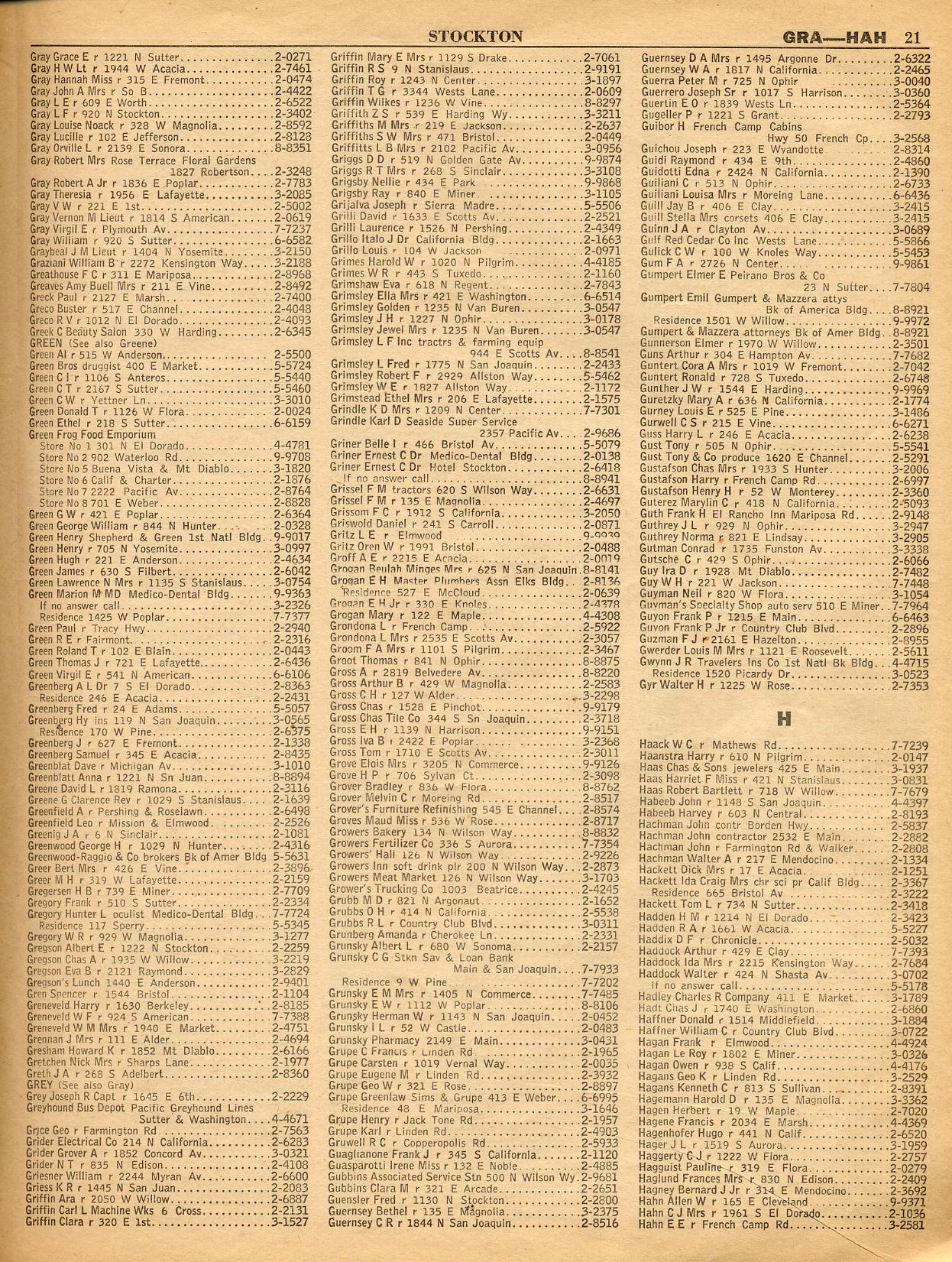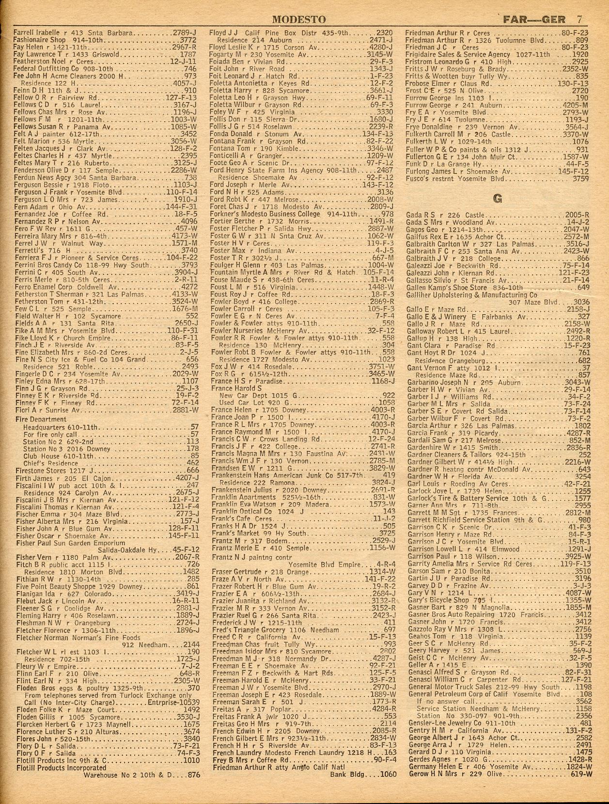 GATZMAN, GOODMAN'S, GROVELAND, GUSTINE