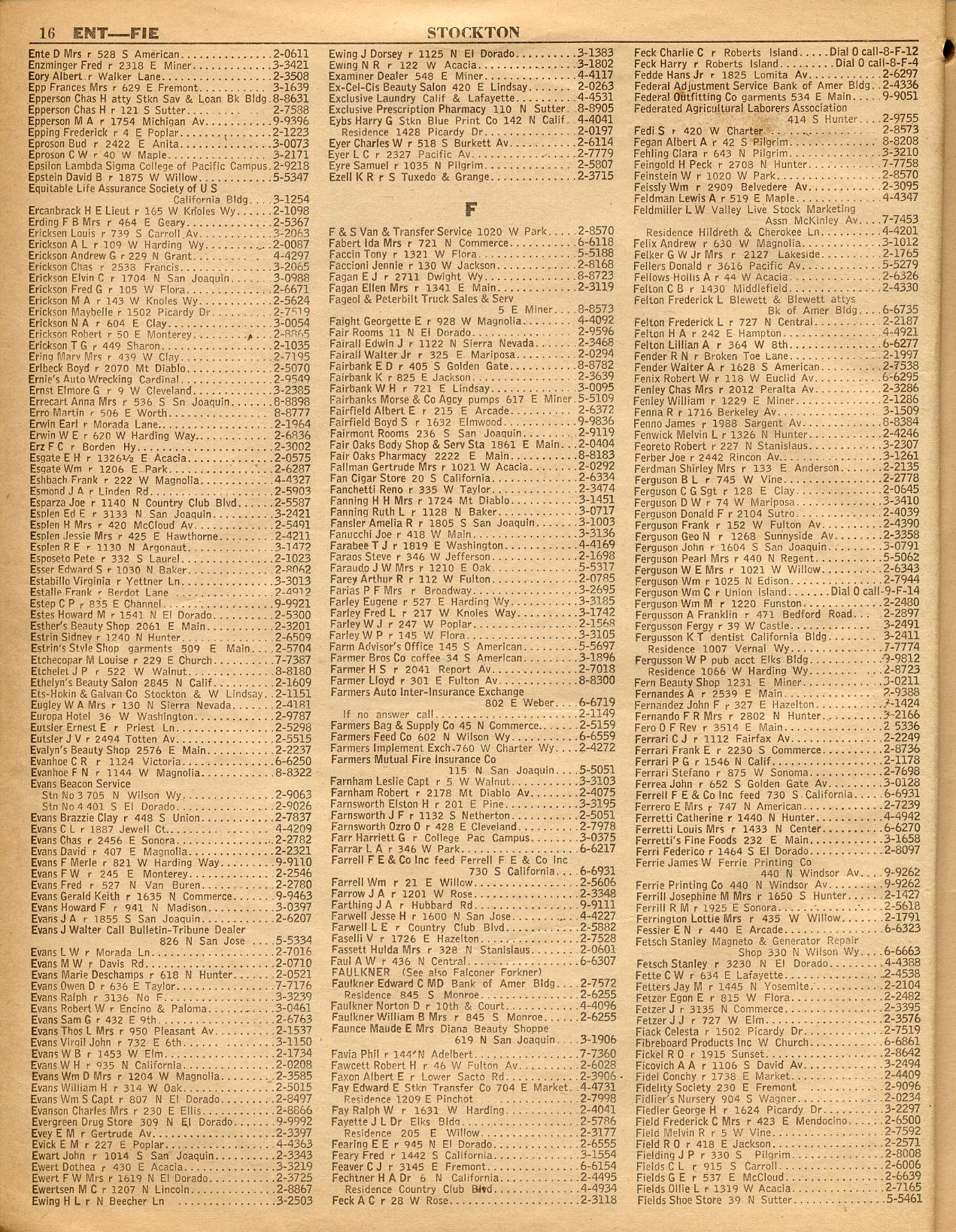 EAGLE-SHAWMUT, EAGLE TREE, ELLIOTT, EMPIRE, ESCALON, ESMERALDA, EUGENE, EVERGREEN LODGE