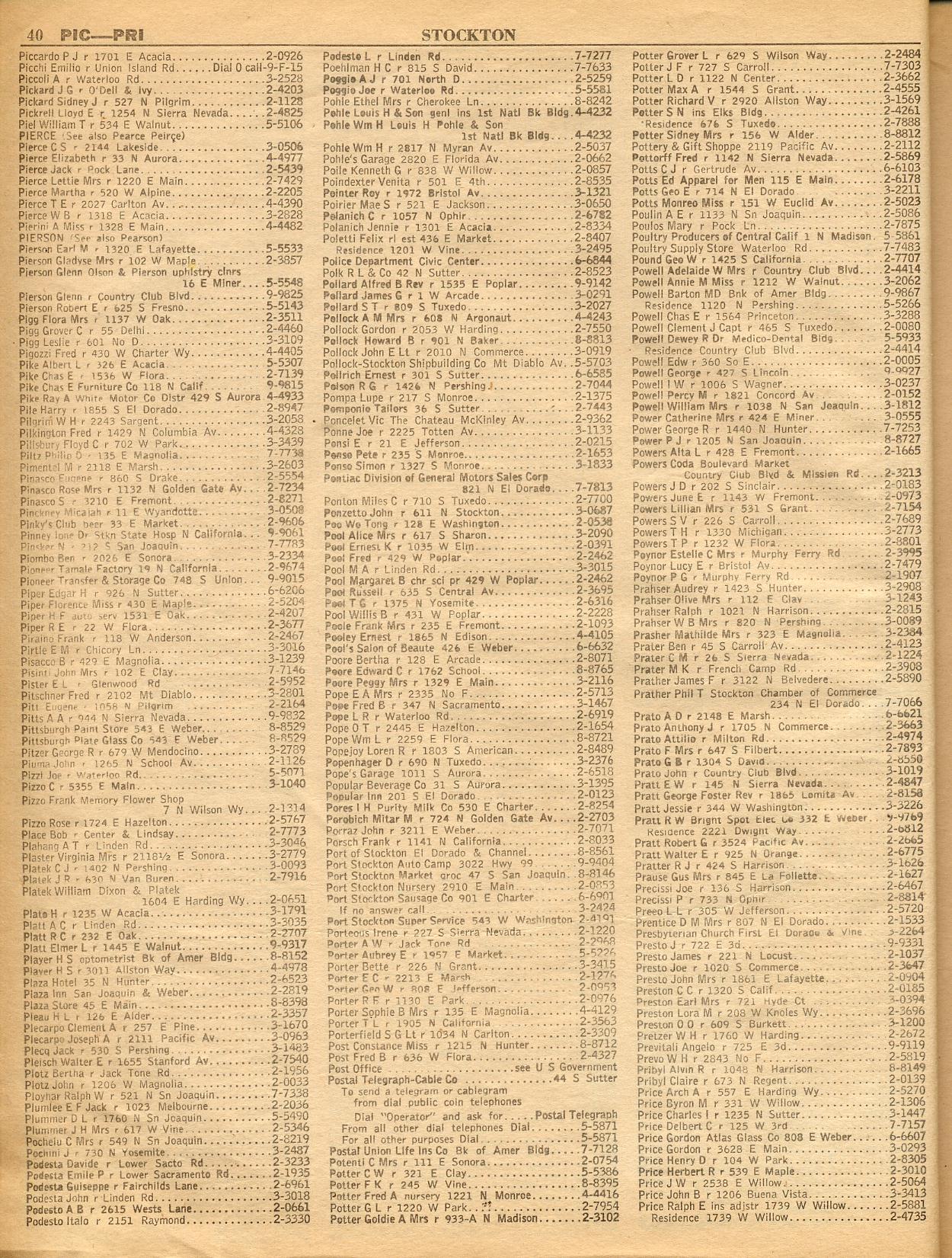 PALOMA, PARADISE DAM, PATTERSON, PENROSE INN, PINE CREST-TOLL STATIONS, PRIEST'S STATION