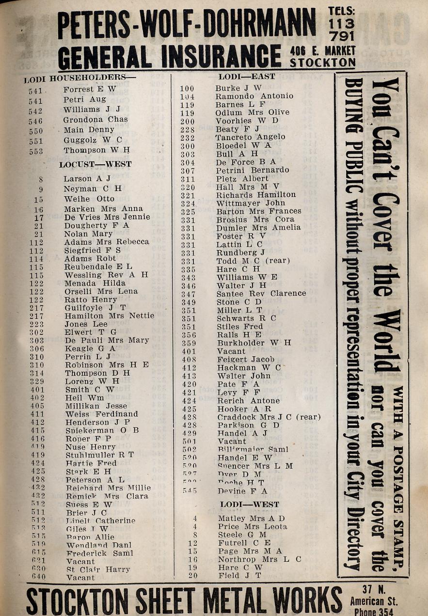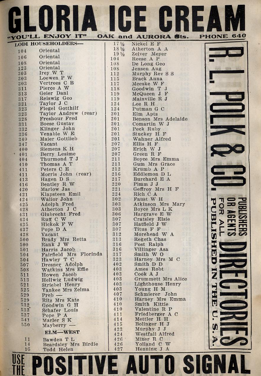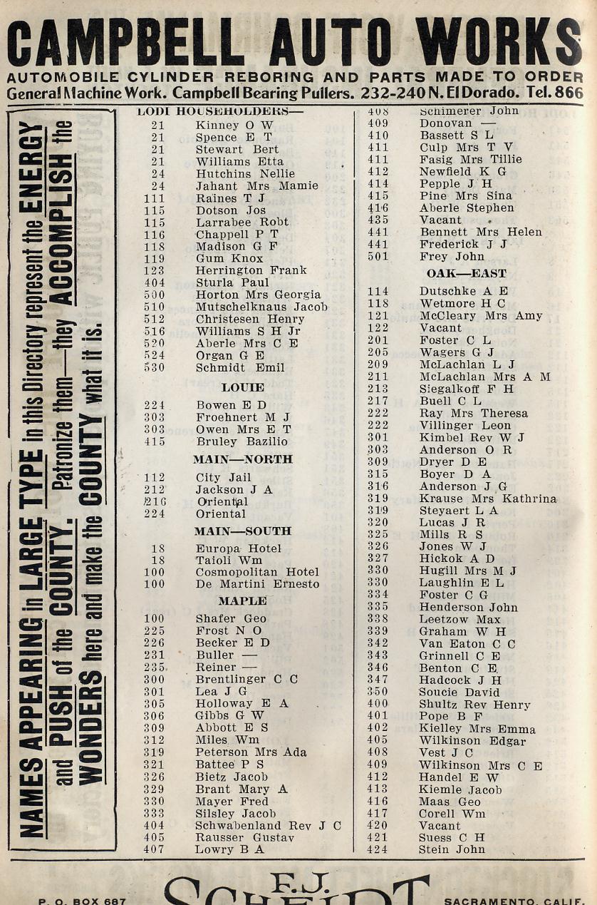 LODI DIRECTORY OF HOUSEHOLDERS (Reverse Lookup)