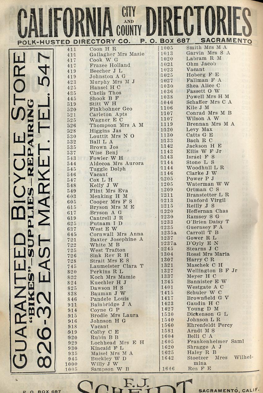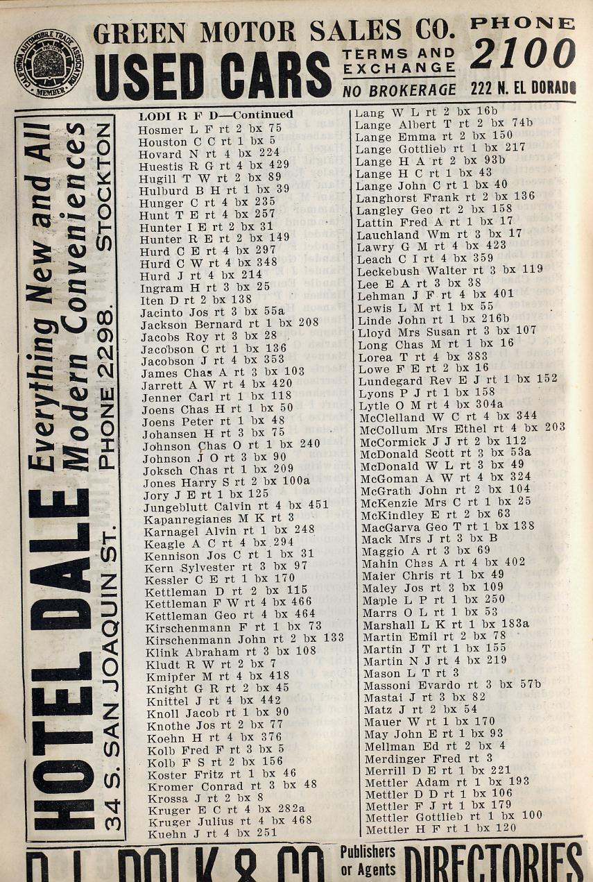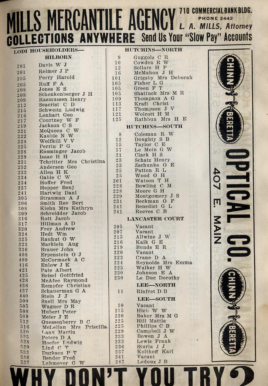 LODI DIRECTORY OF HOUSEHOLDERS (Reverse Lookup)