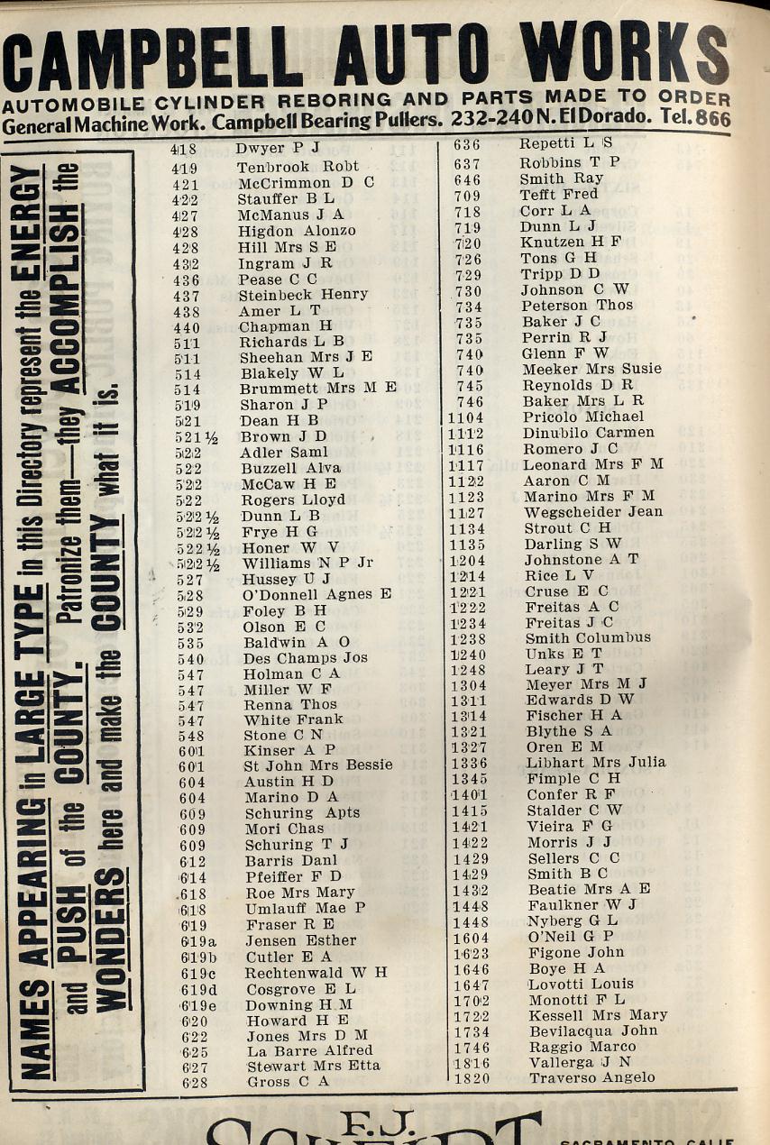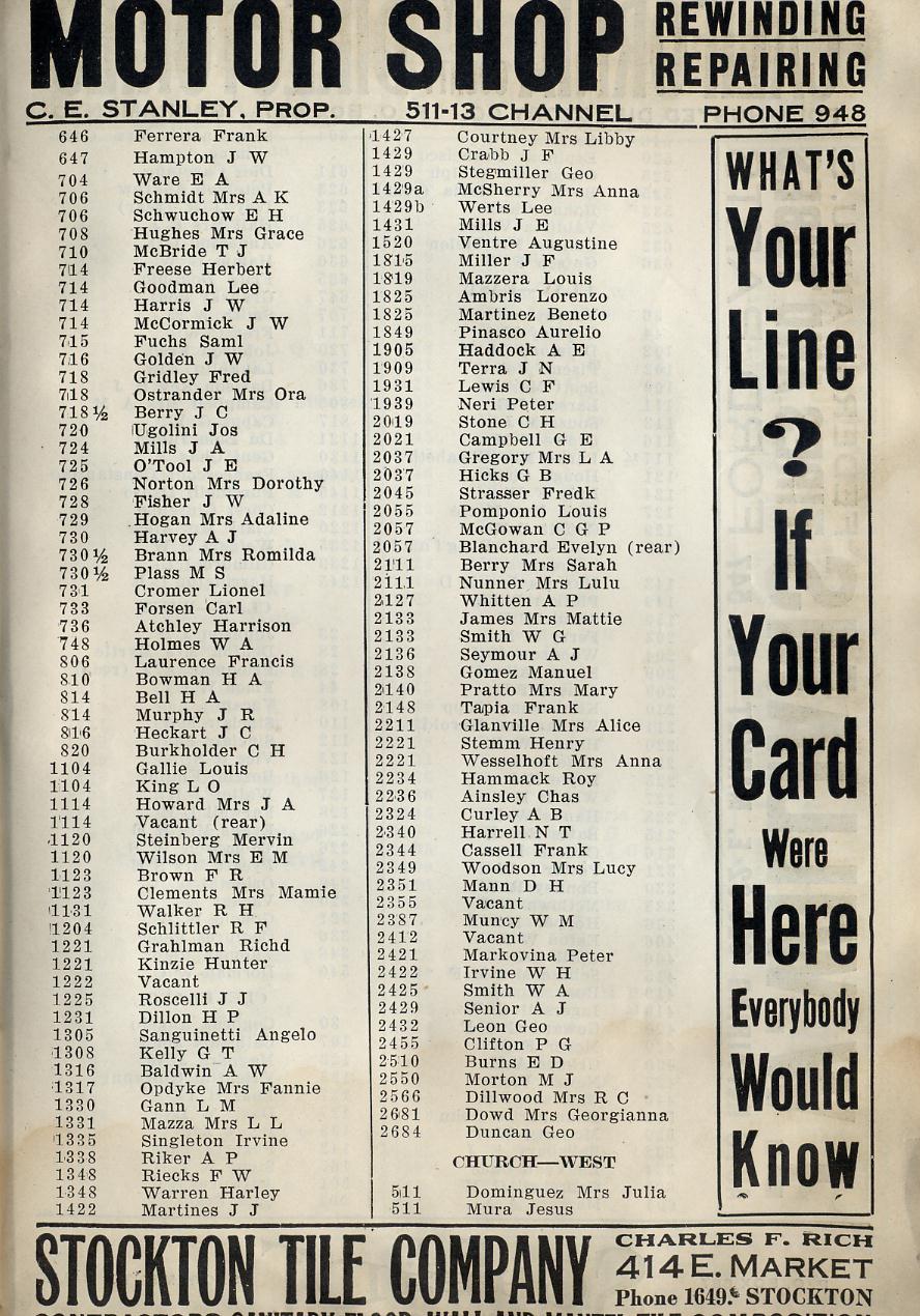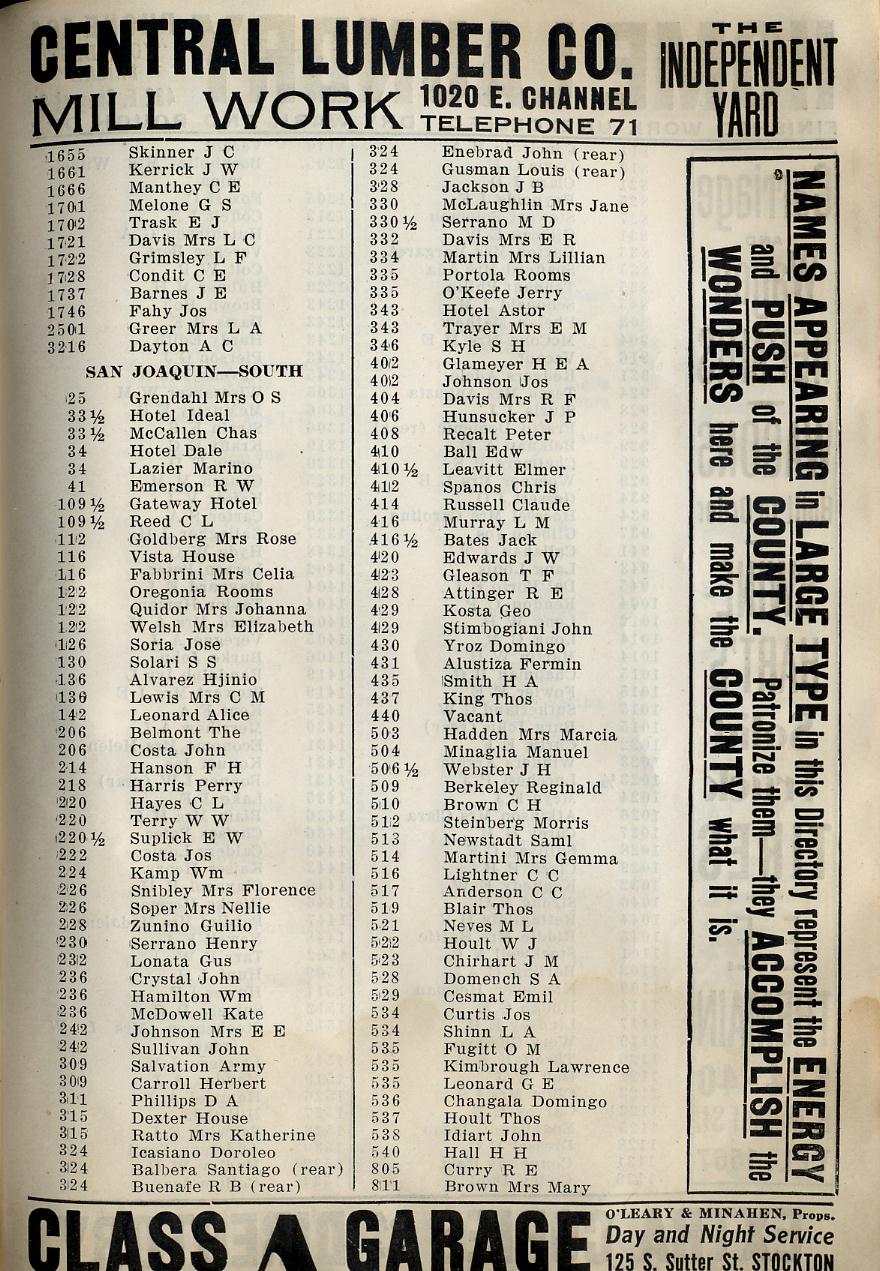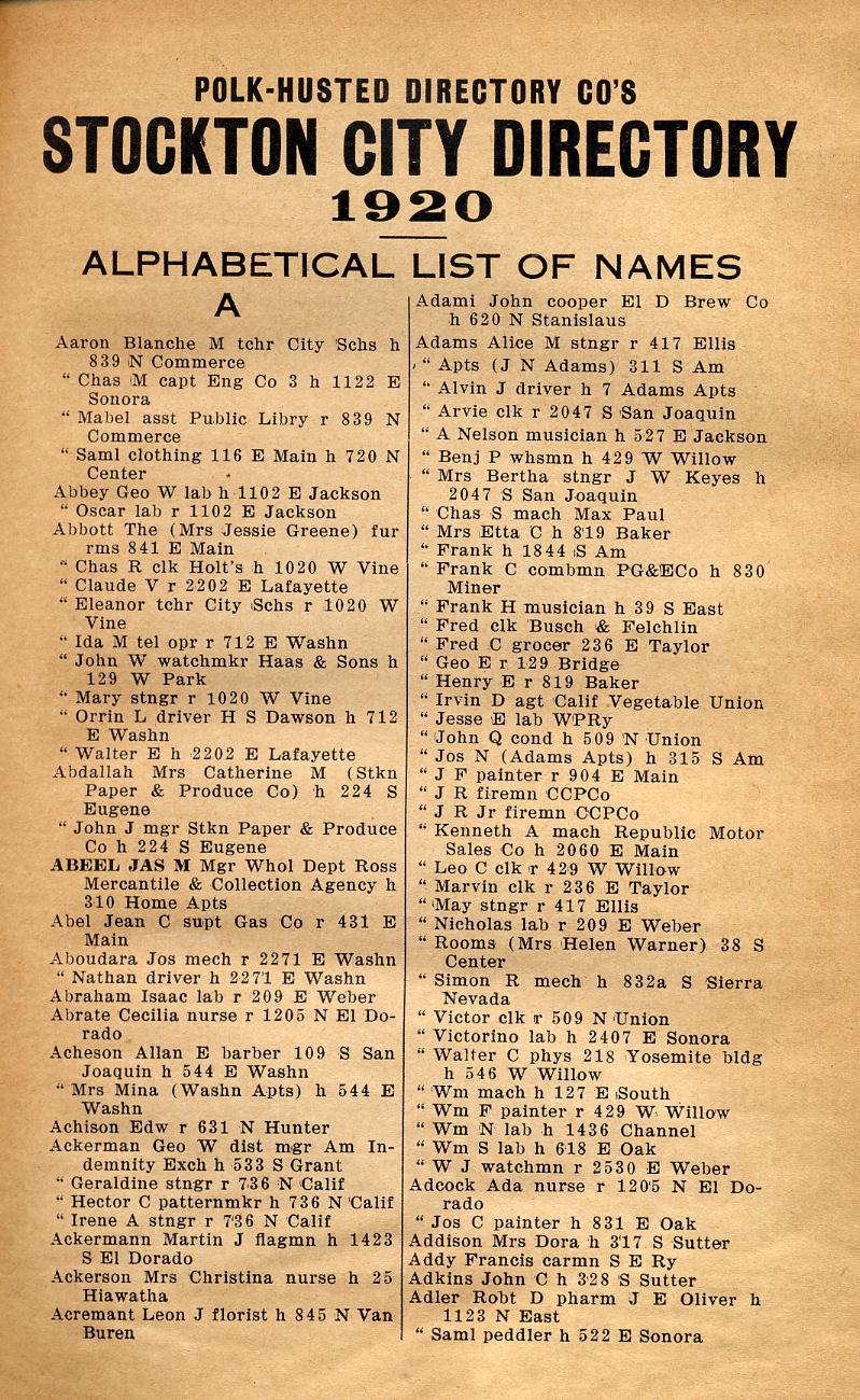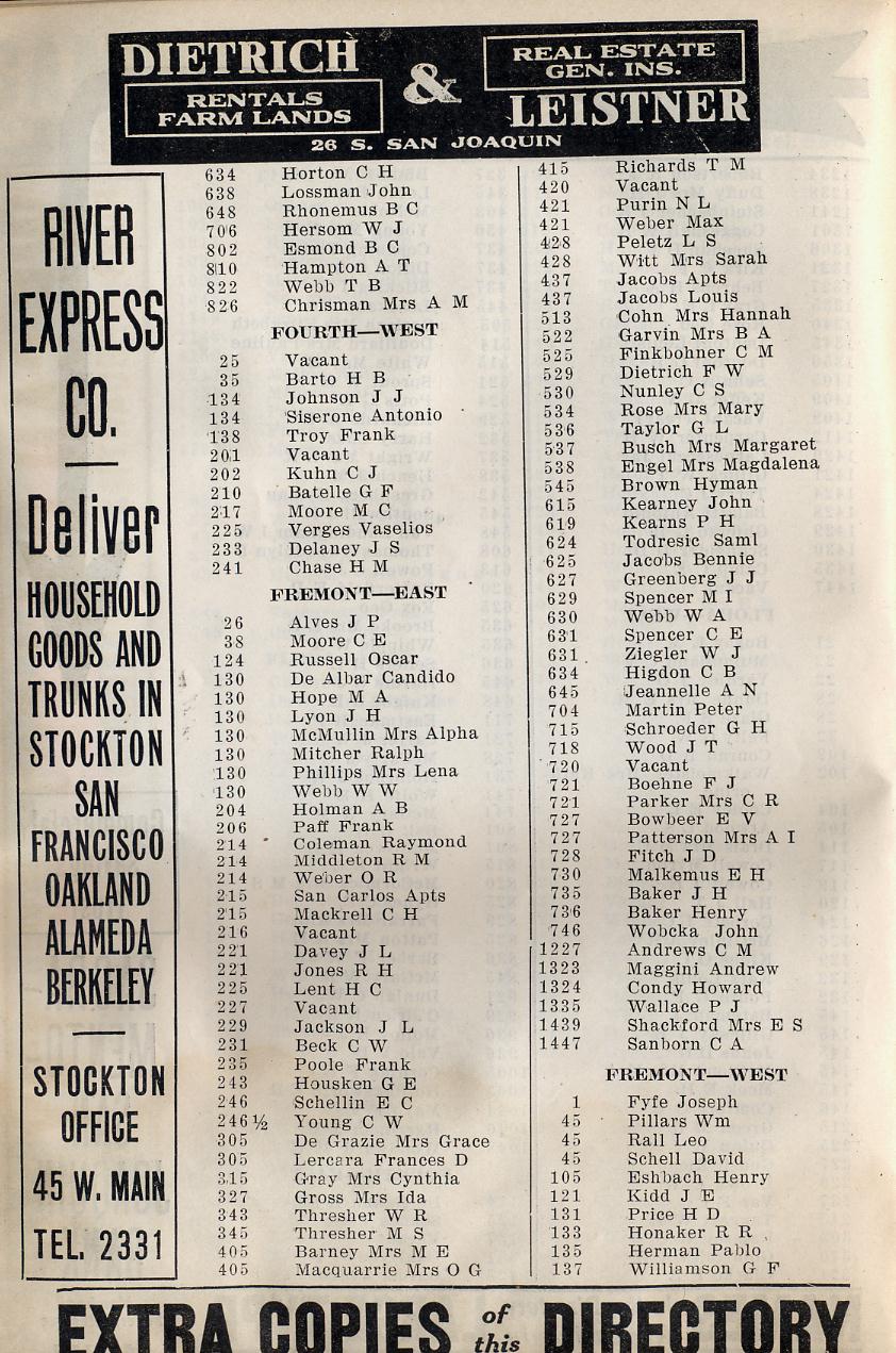 STOCKTON DIRECTORY OF HOUSEHOLDERS (Reverse Lookup)