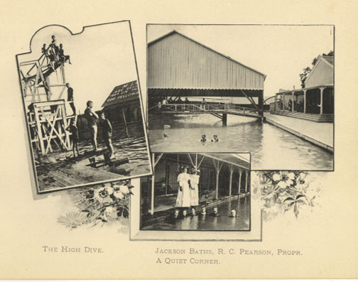 30/Photos (array of 3 on page)/ Jackson Baths, R. C. Pearson, Propr.; The High Dive- Jackson Baths; A Quiet Corner-Jackson Baths