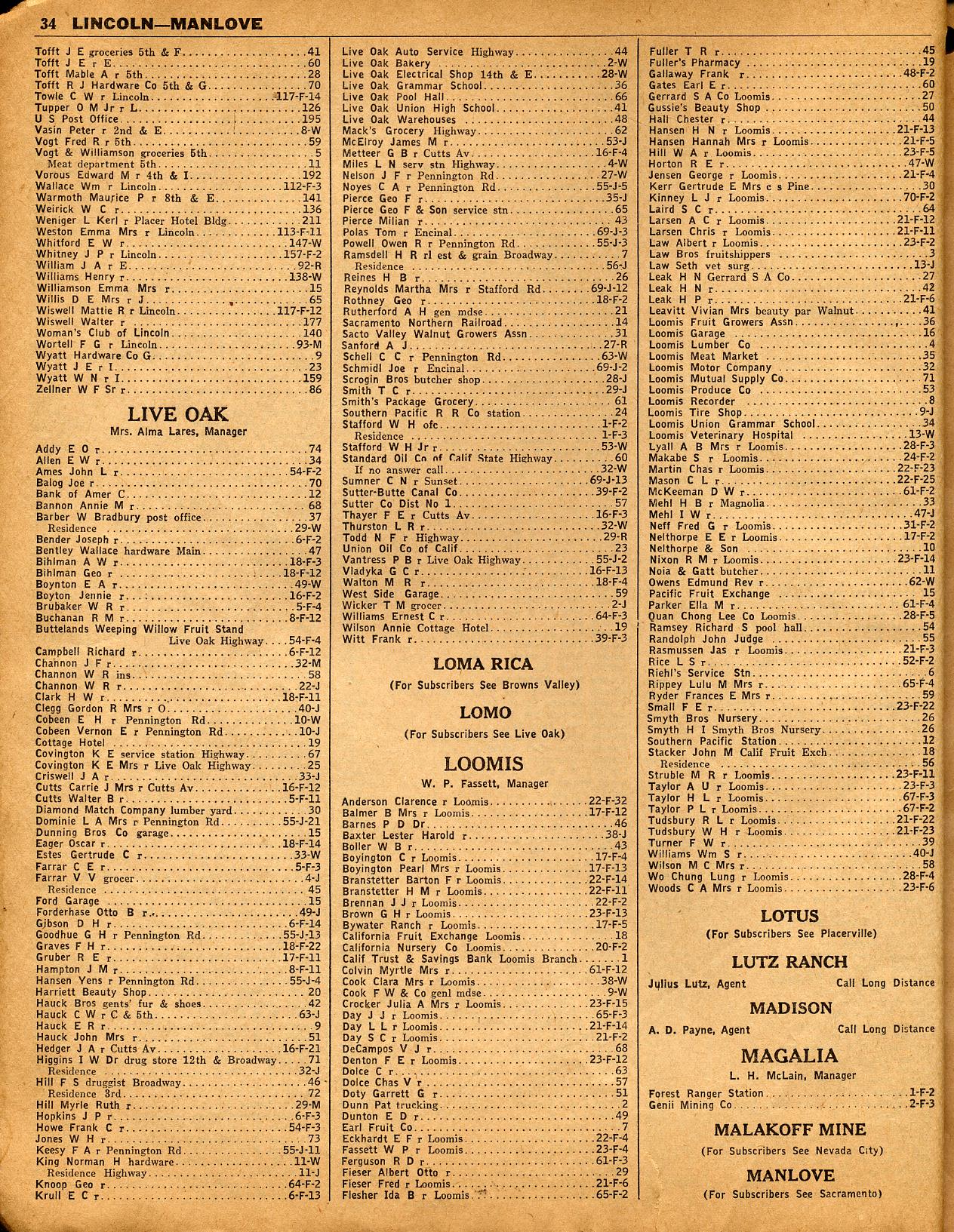 LAKE CITY, LANCHA PLANA, LA PORTE, LAS PLUMAS, LATROBE, LINCOLN, LIVE OAK, LOMA RICA, LOMO, LOOMIS, LOTUS & LUTZ RANCH