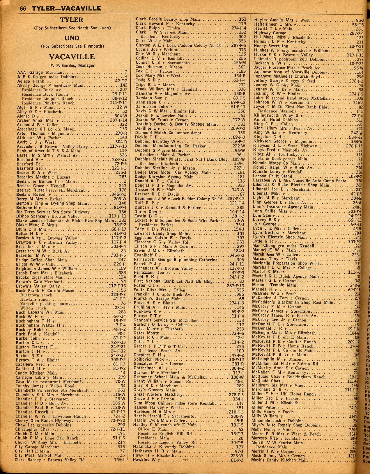 | 61 | | 62 | | 63 | | 64 | | 65 |TAHOE TAVERN, TALLAC, TERRA BUENA, THERMALITO, TOBIN, TOLENAS, TOWLE, TREMONT TROWBRIDGE, TRUCKEE, TUCKER, TUDOR, TWAIN, TWIN BRIDGES, TWIN CITIES & TYLER