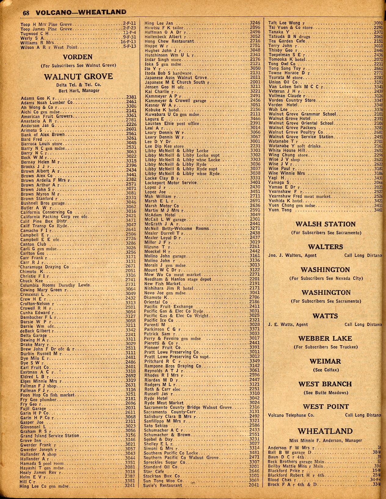| 66 | | 67 | | 68 |WALSH STATION, WALTERS, WASHINGTON, WATTS, WEBBER LAKE, WEIMAR, WEST BRANCH, WEST POINT, WHEATLAND, WHITE HALL, WHITE ROCK, WHITEWASHED TREE, WILCUTTS, WINTERS, WOLF, WOODLAND & WYANDOTTE